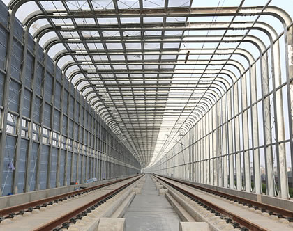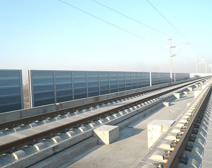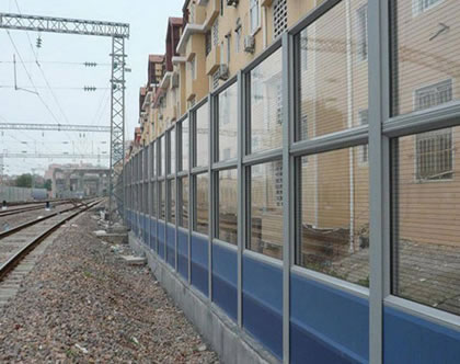 鐵路聲屏障也成為鐵路隔音墻,高鐵聲屏障,它是根據當前高速鐵路列車運行速度200km/h以下產生噪音設計的*種聲屏障。此類產品的設計已較為充分地考慮了高架高速道路、城市輕軌、地鐵的風載、交通車輛的撞擊安全和全天候的露天防腐問題。